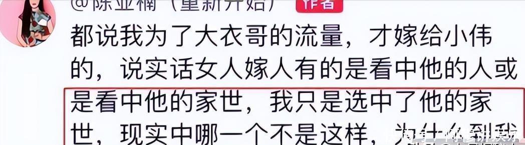 为此陈亚男在网上回击,完全没有觉得自己哪里做错了。“我只是选中了他的家世,现实中哪一个不是这样”。此话一出直接证实了她当初就是看上了老朱家的钱,有钱她才嫁。